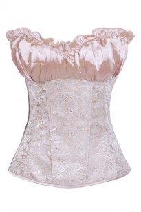 Изысканный классический корсет из плотной атласной ткани на хлопковой подкладке. Кремового цвета, он украшен строгой золотистой полосой и миниатюрными пышными рюшами. Корсет имеет идеальную посадку, поможет выгодно подчеркнуть фигуру.