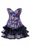 Корсет из плотной джинсовой ткани с подкладкой из натурального хлопка с пышной юбкой. Сиренево-серого цвета с цветочным орнаментом, этот корсет выглядит одновременно классически и современно. Такую модель можно носить как с джинсами, так и с любыми брюками или юбкой. В подобном ансамбле является по истине эффектным, ярким и очень оригинальным вечерним нарядом. Корсет позволяет достичь утяжки 5-7 см. Имеет хлопковую подложку под шнуровкой. Таким образом, даже если корсет очень сильно затянут, ваша спина будет закрыта и все складки, образующиеся при утягивании, будут спрятаны
