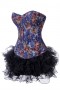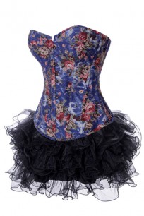 Корсет из плотной джинсовой ткани с подкладкой из натурального хлопкас пышной черной юбкой. Синего цвета с цветочным орнаментом, этот корсет выглядит одновременно классически и современно. Такую модель можно носить как с джинсами, так и с любыми брюками или юбкой. В подобном ансамбле с контрастной пышной юбкой является эффектным, ярким и очень оригинальным вечерним нарядом. Корсет позволяет достичь утяжки 5-7 см. Имеет хлопковую подложку под шнуровкой. Таким образом, даже если корсет очень сильно затянут, ваша спина будет закрыта и все складки, образующиеся при утягивании, будут спрятаны