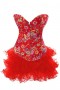 Красный корсет из плотной джинсовой ткани с подкладкой из натурального хлопка с пышной красной юбкой. Ярко-красного цвета с цветочным орнаментом, этот корсет выглядит одновременно классически и современно. Такую модель можно носить как с джинсами, так и с любыми брюками или юбкой. В подобном ансамбле является по истине эффектным, контрастным и очень оригинальным вечерним нарядом. Корсет позволяет достичь утяжки 5-7 см. Имеет хлопковую подложку под шнуровкой. Таким образом, даже если корсет очень сильно затянут, ваша спина будет закрыта и все складки, образующиеся при утягивании, будут спрятаны