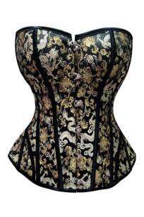 Богатый корсет из плотного атласа с восточным узором в виде драконов, выполненный в благородном сочетании черного, золотого и серебряного цветов. Любая женщина в таком корсете без труда окажется в центре внимания. Планка из стали спереди помогает достичь эффекта плоского живота и создать великолепную утяжку. Корсет имеет хлопковую подкладку, приятную к телу, а также хлопковую подложку под шнуровкой. Таким образом, даже если коосет сильно затянут, ваша спина будет закрыта