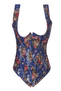 Корсет под грудь из плотной джинсовой ткани с подкладкой из натурального хлопка. Корсет синего цвета с цветочным узором, он выглядит одновременно классически и современно. Данная модель прекрасно подходит как для неформального ношения, например, с джинсами.