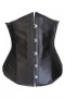 Прекрасный поясной вариант корсета из черного блестящего атласа, хорошо поддерживающий осанку и замечательно моделирующий фигуру. Черный цвет сделает Вашу фигуру ещё более стройной, планка из стали спереди помогает достичь эффекта плоского живота и создать великолепную утяжку. Сзади классическая корсетная шнуровка