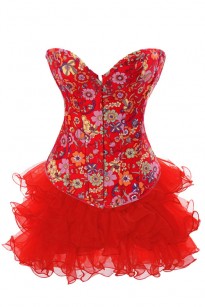 Красный корсет из плотной джинсовой ткани с подкладкой из натурального хлопка с пышной красной юбкой. Ярко-красного цвета с цветочным орнаментом, этот корсет выглядит одновременно классически и современно. Такую модель можно носить как с джинсами, так и с любыми брюками или юбкой. В подобном ансамбле является по истине эффектным, контрастным и очень оригинальным вечерним нарядом. Корсет позволяет достичь утяжки 5-7 см. Имеет хлопковую подложку под шнуровкой. Таким образом, даже если корсет очень сильно затянут, ваша спина будет закрыта и все складки, образующиеся при утягивании, будут спрятаны